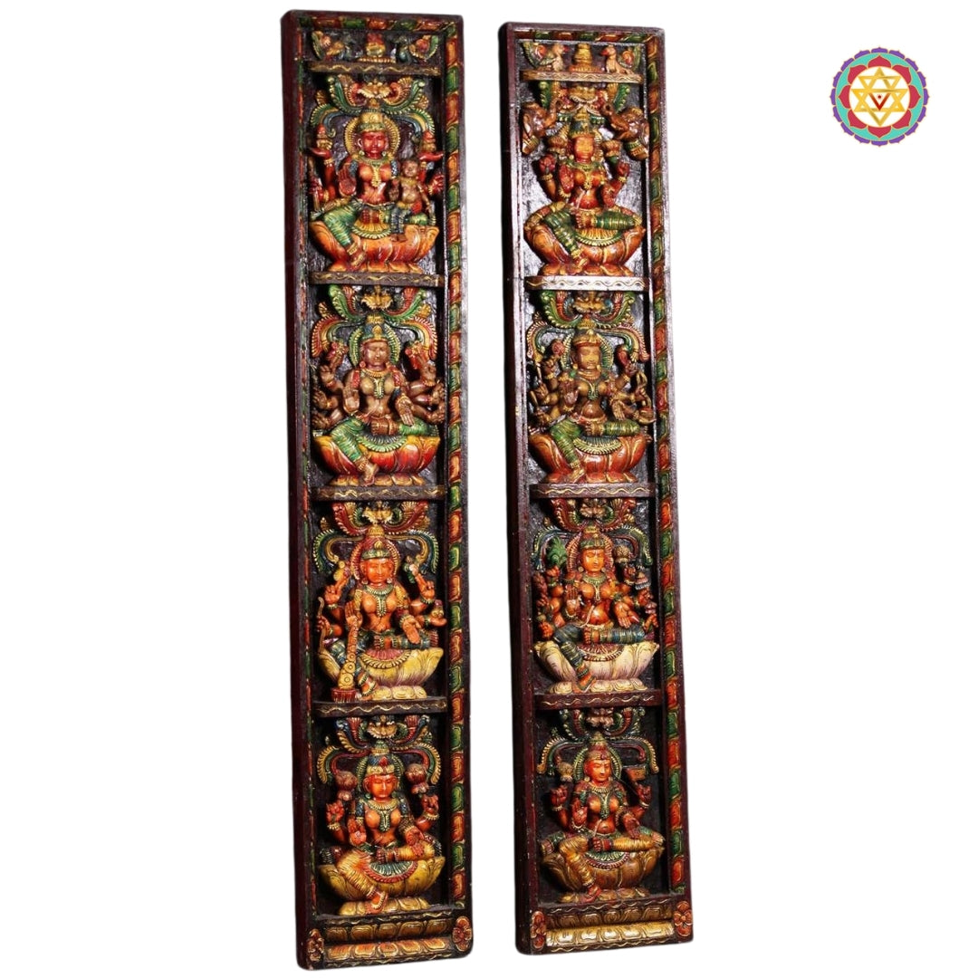 vertical wooden wall panel – Ashtalakshmi Pair in Multicolour (Set of 2) - H48 - W15 - D3 (Inches)