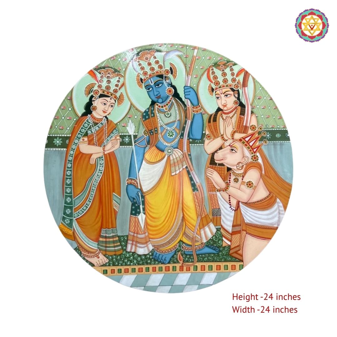 24”Round pichwai style -handpainted wall plate -aesthetic vintage style ram darbar