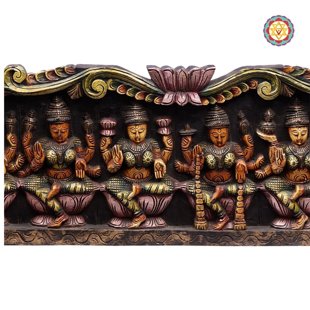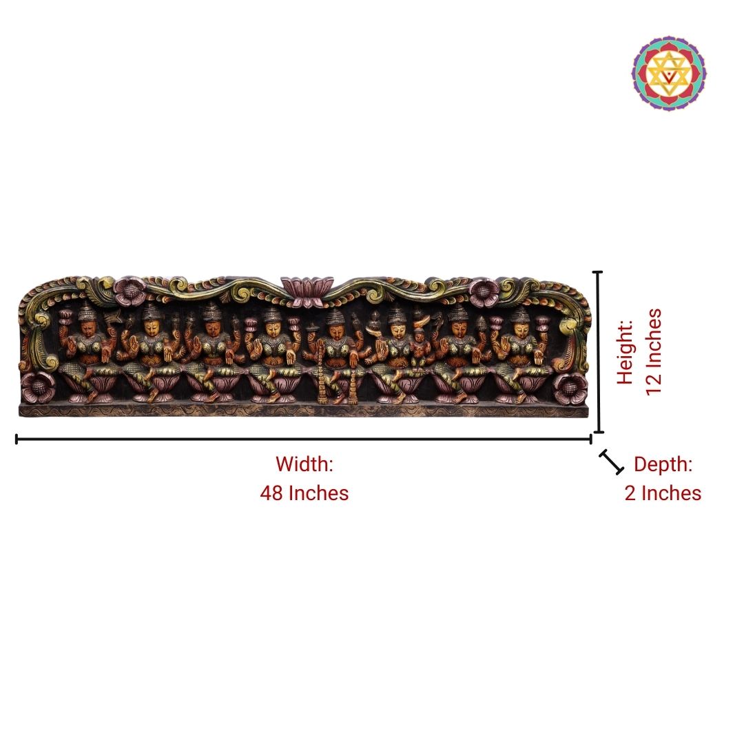 48” Intricately Carved Horizontal Ashtalakshmi Multicolour Panel – Divine Wall Art