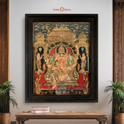 Vintage Style Handmade Tanjore Painting – Traditional Lord Ganesha with Worshippers | Real Gold Work