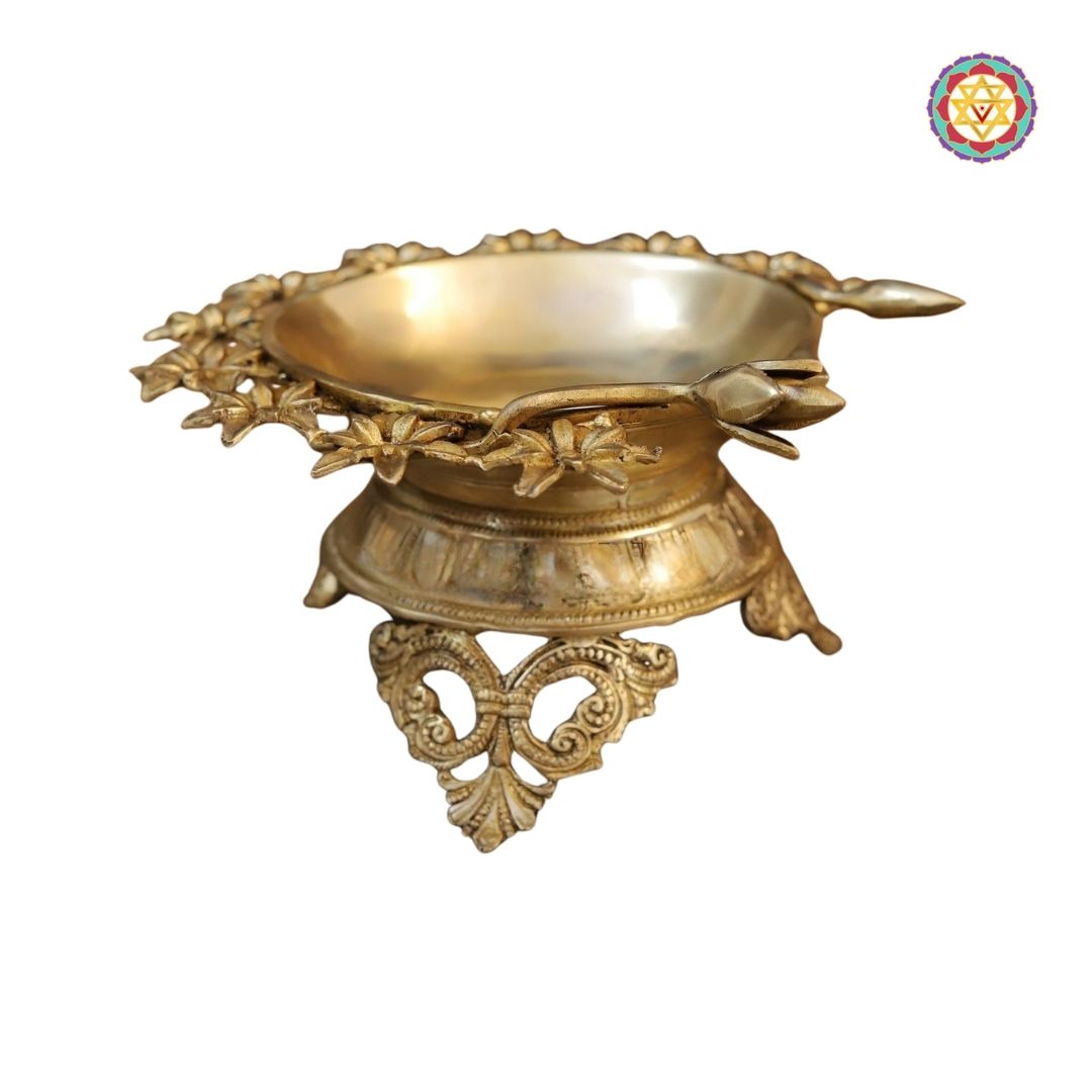 This brass flower urli is expertly crafted to add an elegant touch to any home décor. With a beautifully designed base and a luxurious golden finish, it brings a sense of sophistication and warmth to any room. Ideal for creating a serene atmosphere, this brass urli is perfect for home decoration, temple use, and worshipping rituals. It also makes a thoughtful gift for weddings, Diwali, or other special occasions, adding a timeless charm to your space.