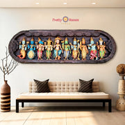 Dasavatharam wooden panel – Curved Temple Wall Art in Vagai Wood - H12 - W36 - D2