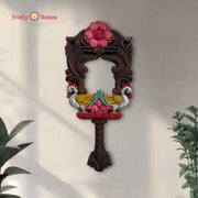 Exquisitely handcarved wooden mirror frame featuring majestic Annams and intricate floral motifs.