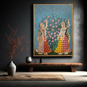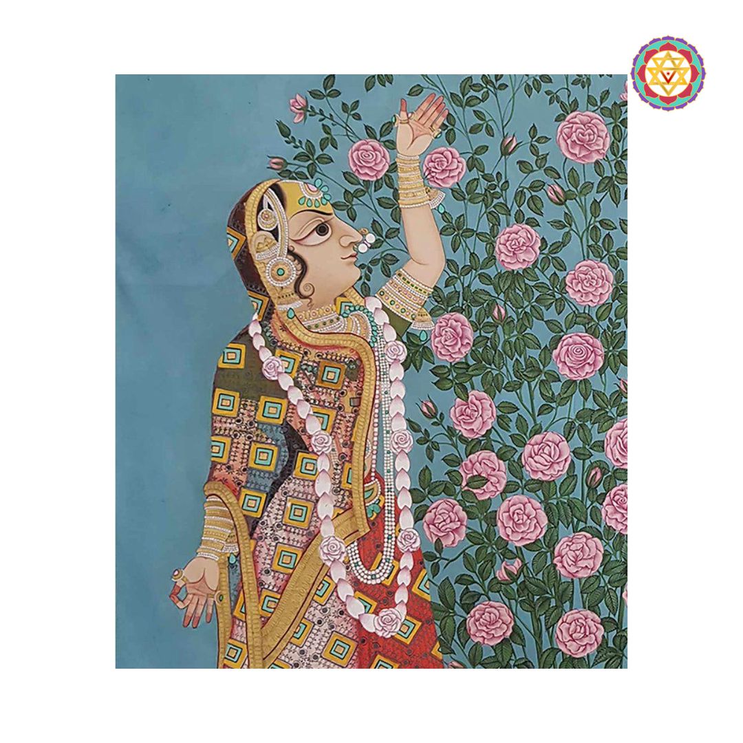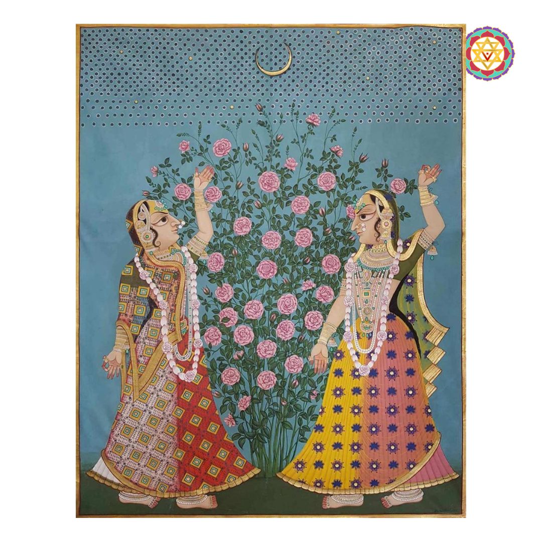 Hand-Painted Pichwai – Gopikas Under the Moon & Flowers | Pichwai Artwork