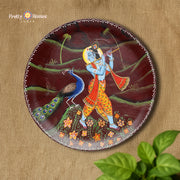 Hand painted wall plate -pichwai Murli Krishna and mor