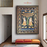 An exquisite handpainted Pichwai featuring graceful Gopikas and intricately detailed musical apsaras in a celebratory mood. Rich in cultural symbolism and fine artistry, this piece adds depth and traditional charm to any curated space. A perfect blend of devotion, music, and movement captured on canvas.
