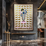 Handpainted pichwai-Shrinathji Darshan – Pichwai with Golden Cows