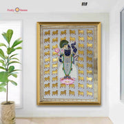 A divine handpainted Pichwai featuring Shrinathji in a traditional darshan pose, adorned with radiant golden cows. A serene blend of devotion and artistry, perfect for heritage-inspired spaces.