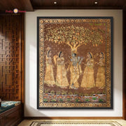 Handpainted Vintage-Style Pichwai – Flute Krishna with Gopikas