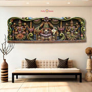 Bring divine grace into your home with this hand-carved horizontal wooden panel featuring Lord Balaji, Sridevi, and Bhudevi. Crafted in vibrant multicolour on Vagai wood, it radiates traditional beauty and spiritual calm—perfect for pooja spaces or heritage-inspired interiors.