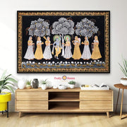 Horizontal Handpainted Pichwai – Radha Krishna with Gopikas Under Moonlight - H36 - W60