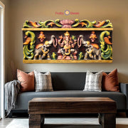 Intricately Handcarved Gajaganesh with Gopuram – Divine Horizontal Panel