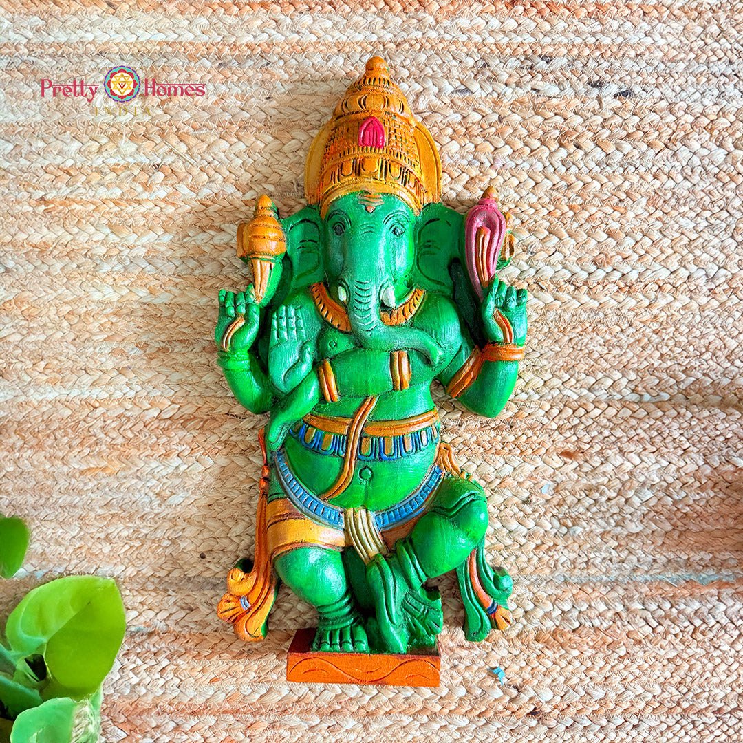 Multicolour Dancing Ganesha – Handcarved Wooden Tabletop Idol