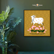 Hand-Painted Pichwai Cows With Lotuses - H14 | W12 (Inches)