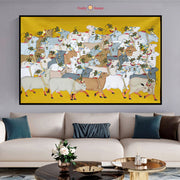 Hand painted Pichwai painting featuring a vibrant herd of pichwai cows, beautifully detailed in classic pichwai painting style.