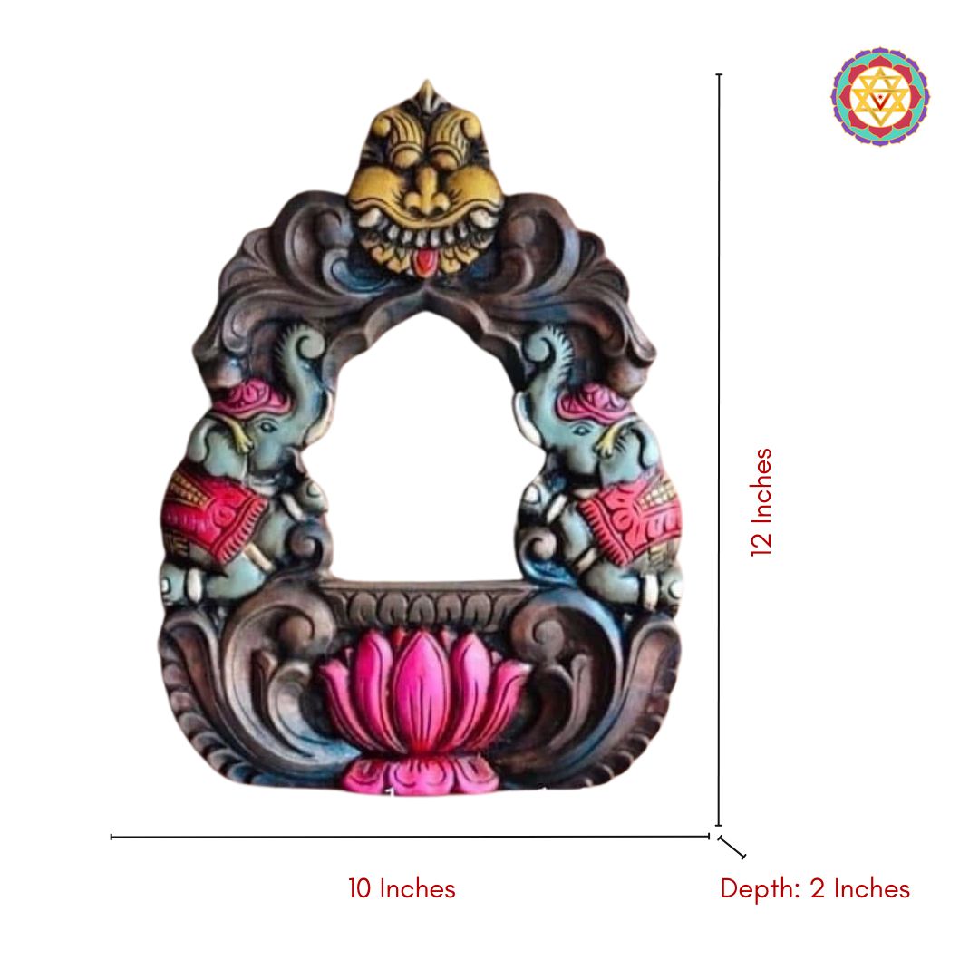Handcarved Wooden Frame with Parrot & Elephant Design