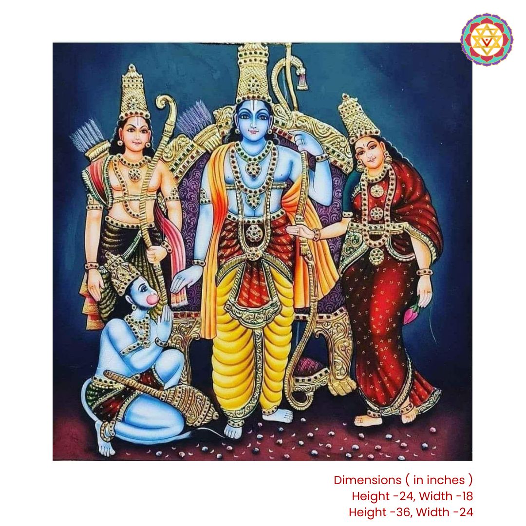 Tanjore Style Ram Darbar on Cotton – Handpainted with Real Gold Foil - H24 - W18