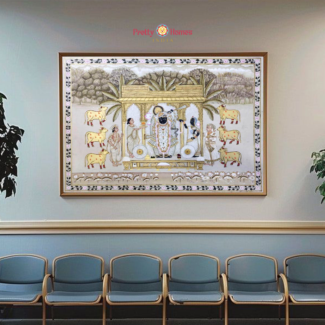 Vintage Style Hand Painted Pichwai – Daan Leela with Shrinathji and Cows