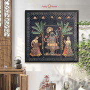 A vintage-style handpainted Pichwai featuring Shrinathji surrounded by Gopikas playing musical instruments. Rich in devotional energy and intricate detailing, this artwork beautifully captures the essence of divine celebration and tradition.