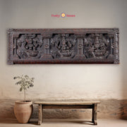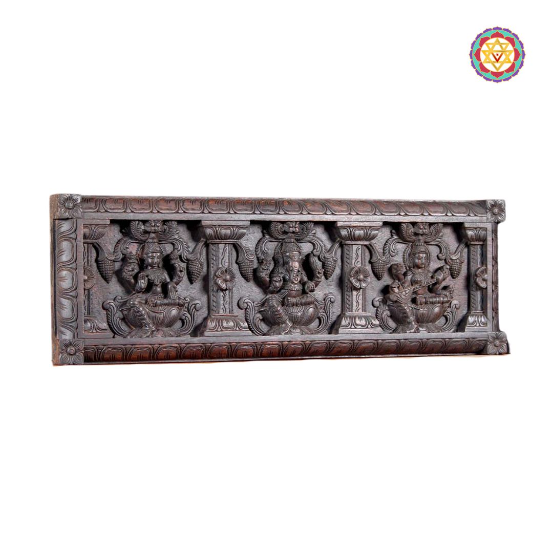 Bring home divinity and heritage with this hand-carved masterpiece. Our decorative wood panels for walls showcase Lord Ganesh, Goddess Lakshmi, and Saraswati in detailed relief — perfect for spiritual corners or traditional living rooms.