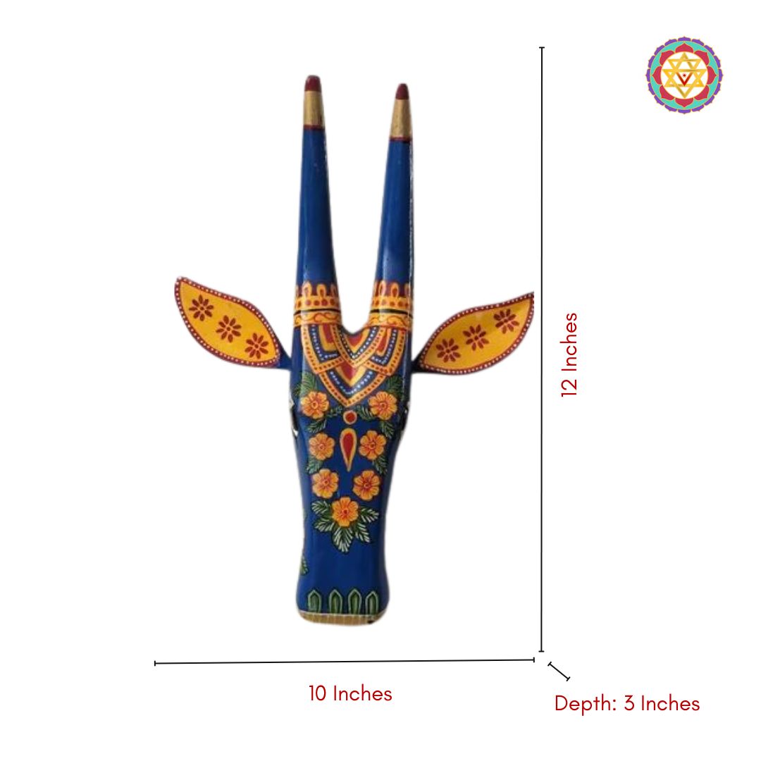 wood carved ,hand painted decorative wall mountable cow heads /nandi head and Blue floral