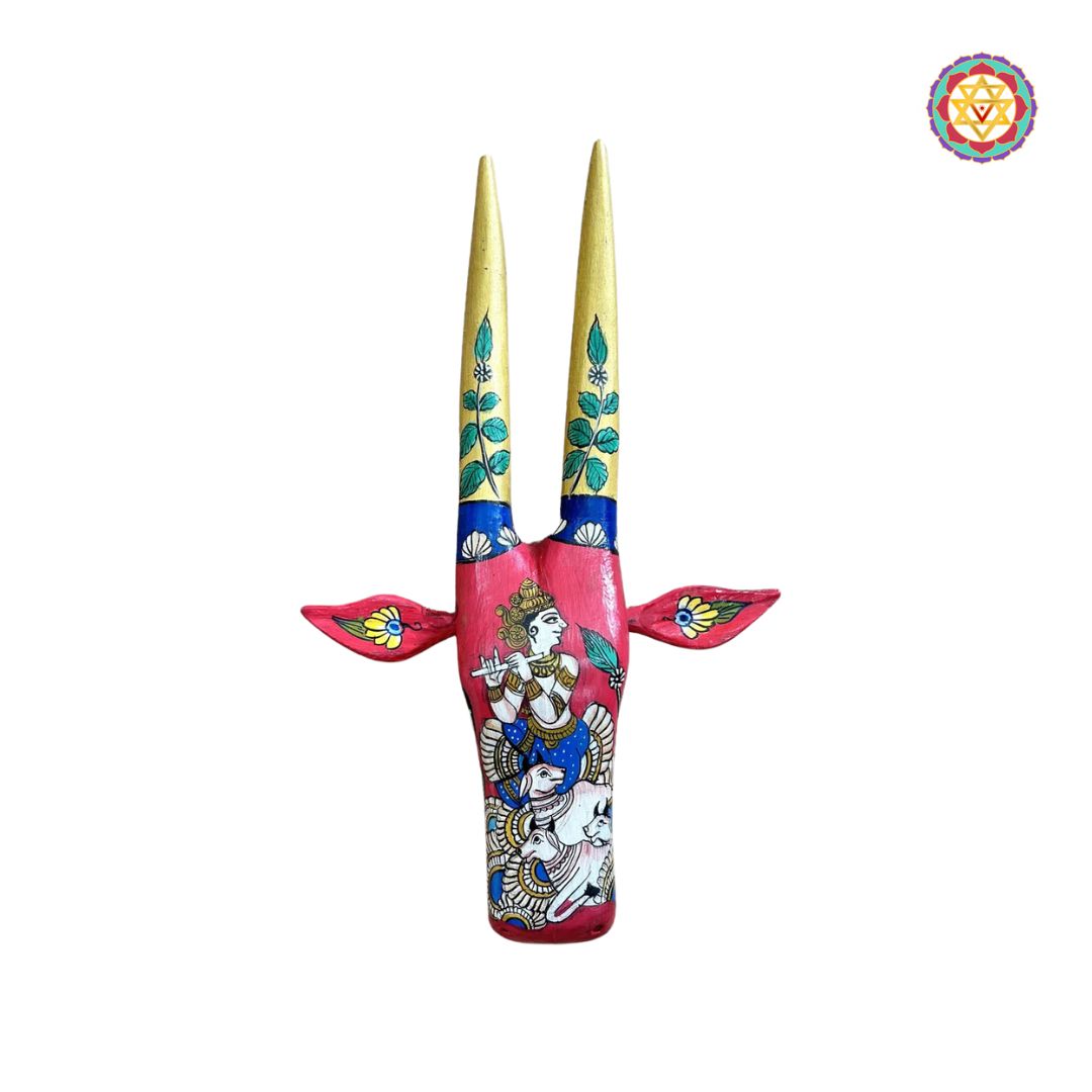 wood carved ,hand painted decorative wall mountable cow heads /nandi head and Red Krishna handpainted