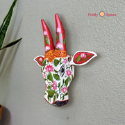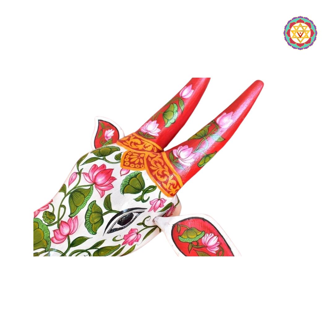 Wood carved ,hand painted decorative wall mountable cow heads /Nandi head .Lotus and leaves