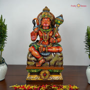 Woodcarved Sitting Hanuman in Abhaya Mudra – Symbol of Strength & Protection