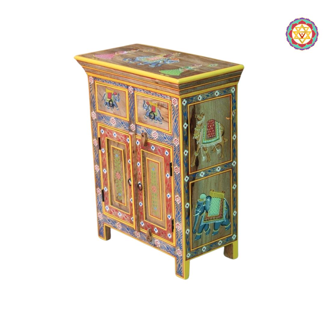 Wooden Handpainted Storage Cabinet – Side Cabinet with Floral & Elephant Paintings