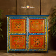 Wooden Storage Cabinet with Floral Motifs